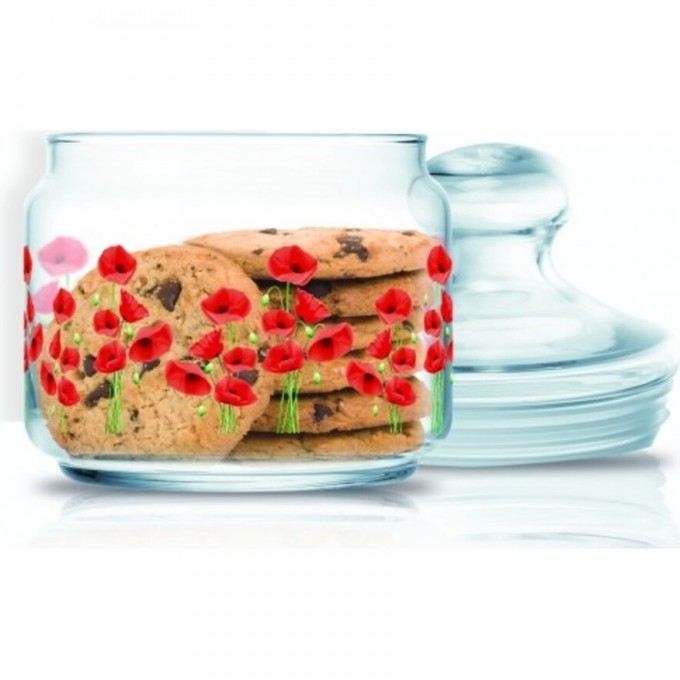 Стеклянная банка Люминарк с рисунком из красных маков на прозрачном фоне. Предназначена для мелких и сыпучих продуктов. Стеклянная крышка снабжена силиконовым уплотнителем и закрывается герметично. Закаленное стекло отличается повышенной прочностью и устойчивостью к сколам.