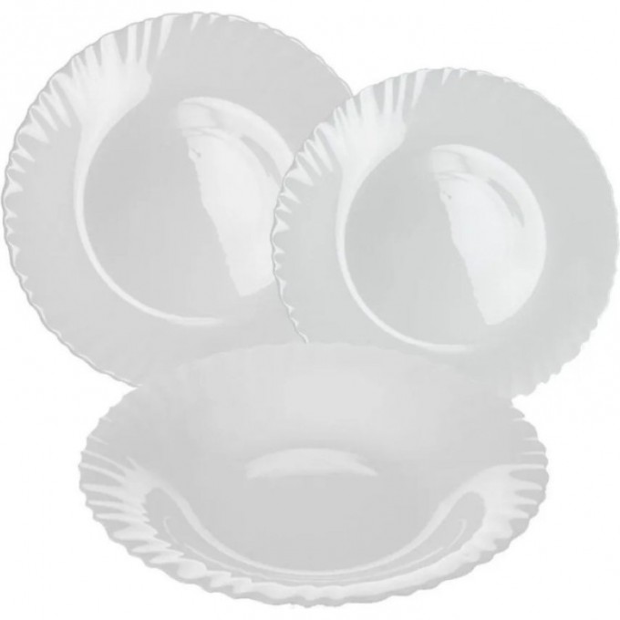 Столовый набор марки Luminarc придется по душе любой хозяйке, ценящей в посуде практичность и надежность. Набор рассчитан на шесть персон и состоит из восемнадцати предметов: суповых, обеденных и десертных тарелок. Белоснежная посуда с изящным рельефным бордюром украсит ежедневный завтрак, обед или ужин и найдет свое место на любой кухне или столовой. Столовый набор, изготовленный из ударопрочного стекла, прослужит долго, сохранив первоначальный внешний вид. Тарелки можно мыть в посудомоечной машине и использовать в СВЧ-печи.